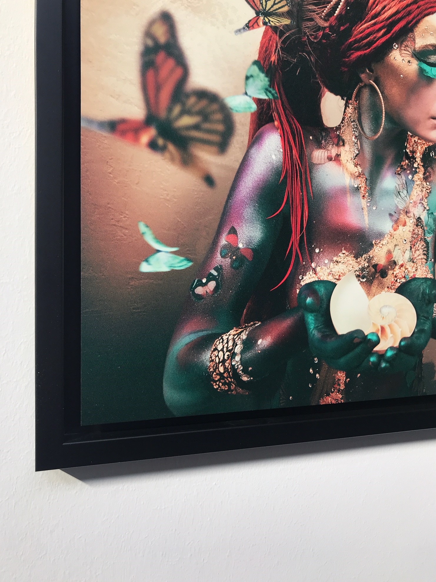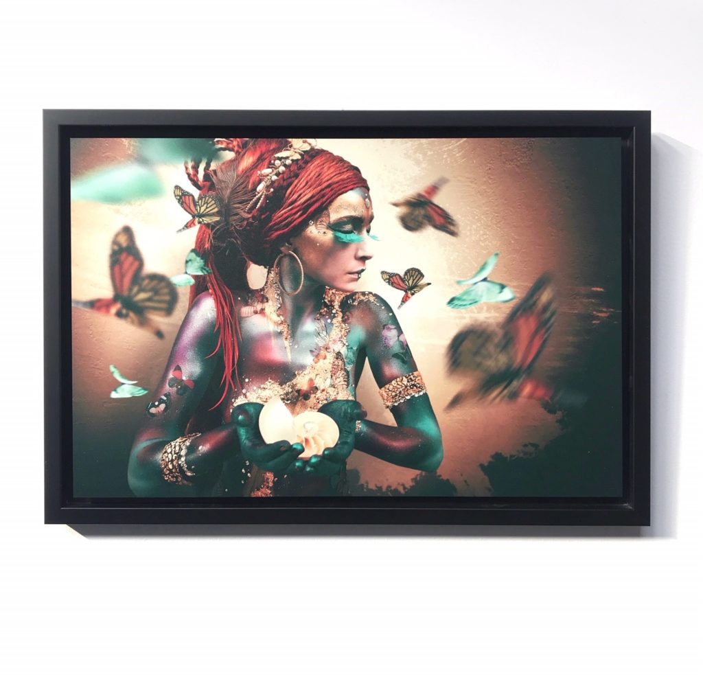 Fraaie originele foto van de Spaanse fotograaf – kunstenaar Jaime Ibarra. Aluminium druk in een zwart houten baklijst.