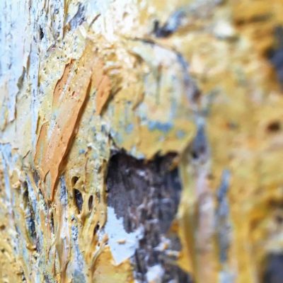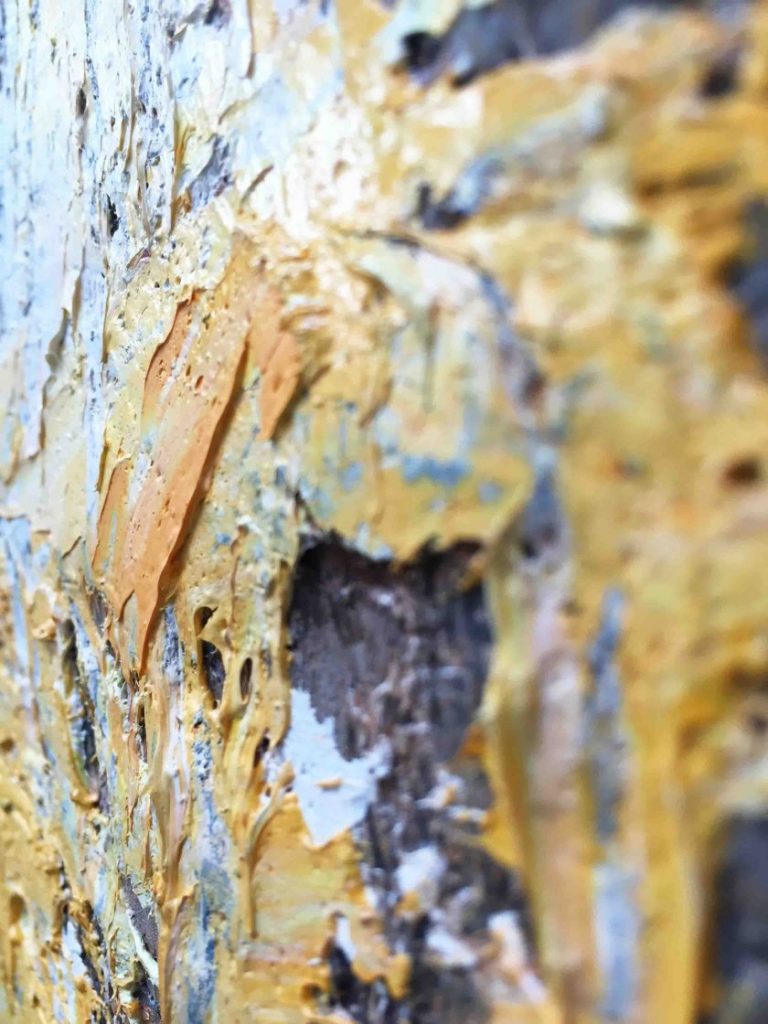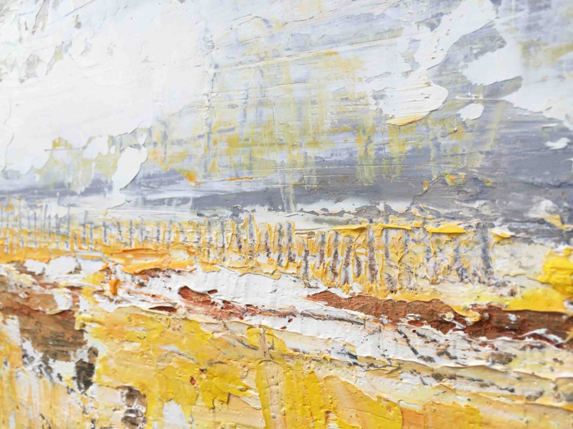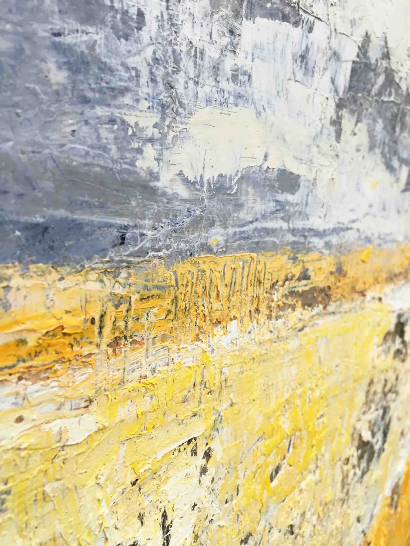 Bijzonder fraai nieuw origineel werk van Yolanda Philippens, vervaardigd in de zomer van 2015. Het werk van Yolanda Philippens wordt gekenmerkt door een krachtig en intrigerend spel van materie, techniek en abstracte expressie. Yolanda Philippens laat zich bij het vervaardigen van haar werk vooral inspireren door verweerde en vervallen gebouwen en muren en landschap impressies. Zij laat op het doek de schoonheid van verval en verlaten landschappen zien en laat middels dikke lagen olieverf en gemengde technieken haar doeken spreken.