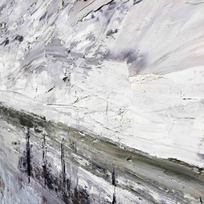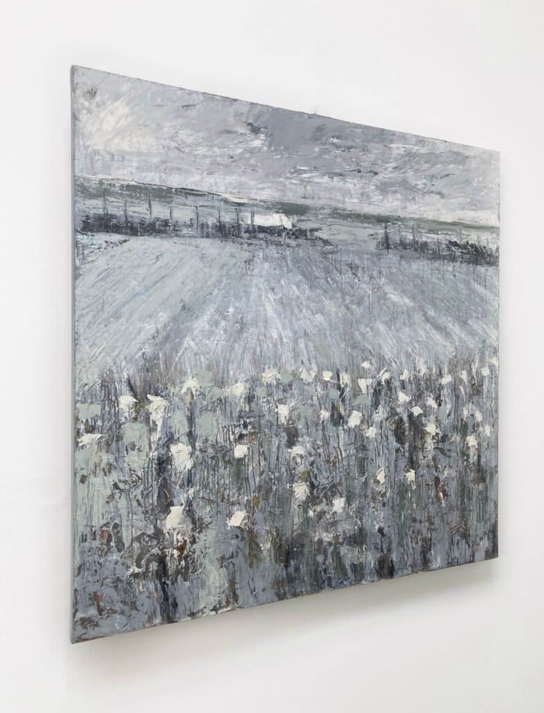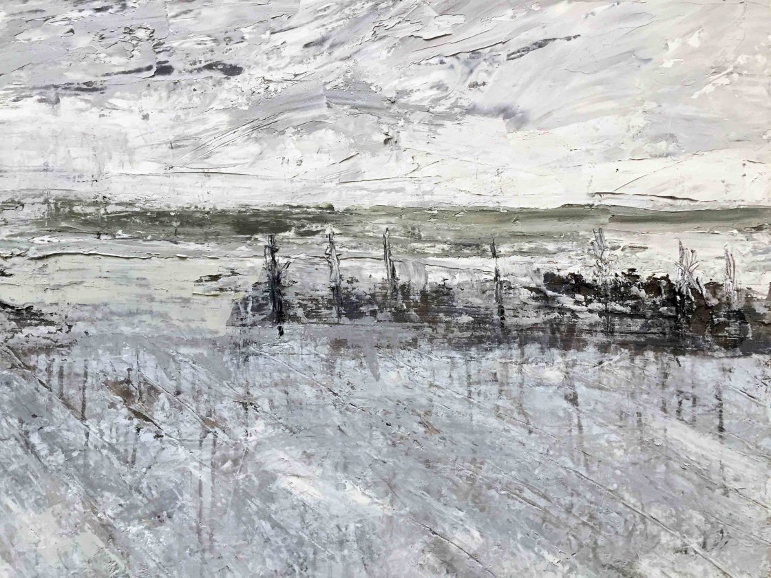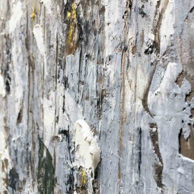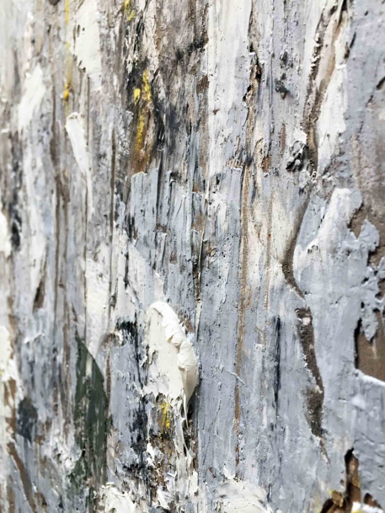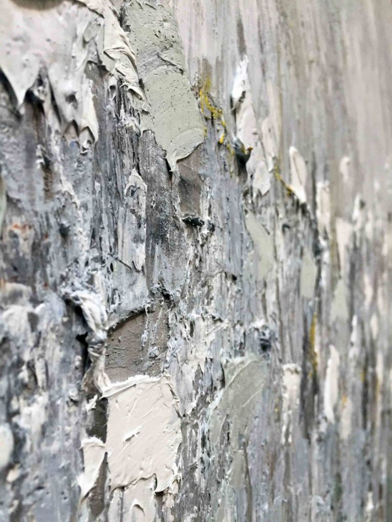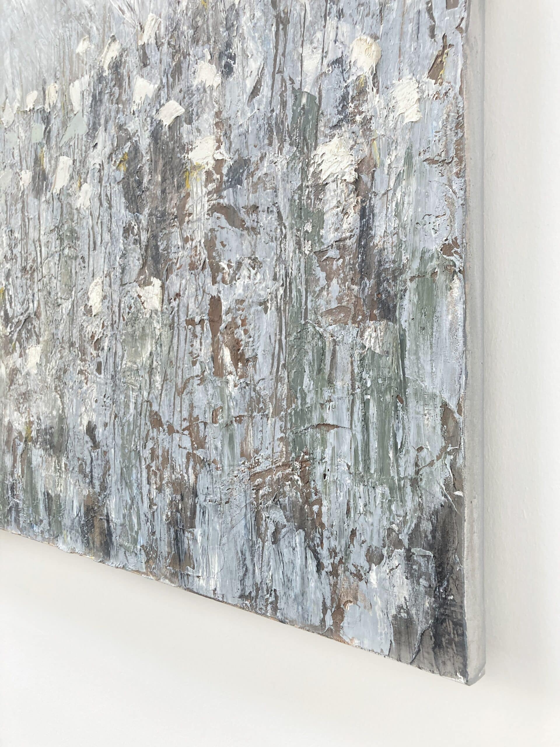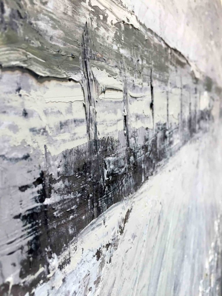 Fraai origineel werk op linnen van Yolanda Philippens. Het werk van Yolanda Philippens wordt gekenmerkt door een krachtig en intrigerend spel van materie, techniek en abstracte expressie. Yolanda Philippens laat zich bij het vervaardigen van haar werk vooral inspireren door verweerde en vervallen gebouwen en muren en landschap impressies. Zij laat op het doek de schoonheid van verval en verlaten landschappen zien en laat middels dikke lagen olieverf en gemengde technieken haar doeken spreken.
