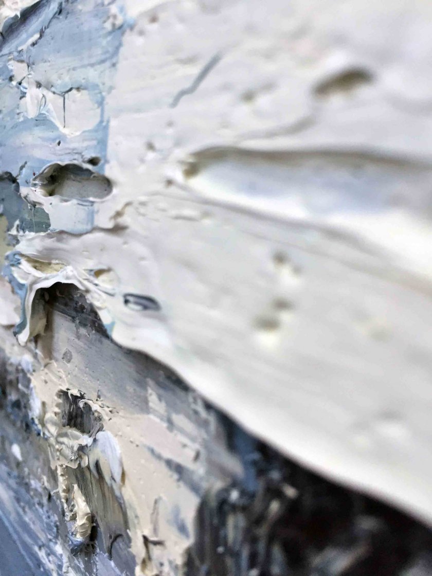 Bijzonder krachtig en intrigerend spel van materie, techniek en abstracte expressie. De stukken van Philippens laten middels dikke lagen olieverf en gemengde technieken de schoonheid van verval en verlaten landschappen zien.