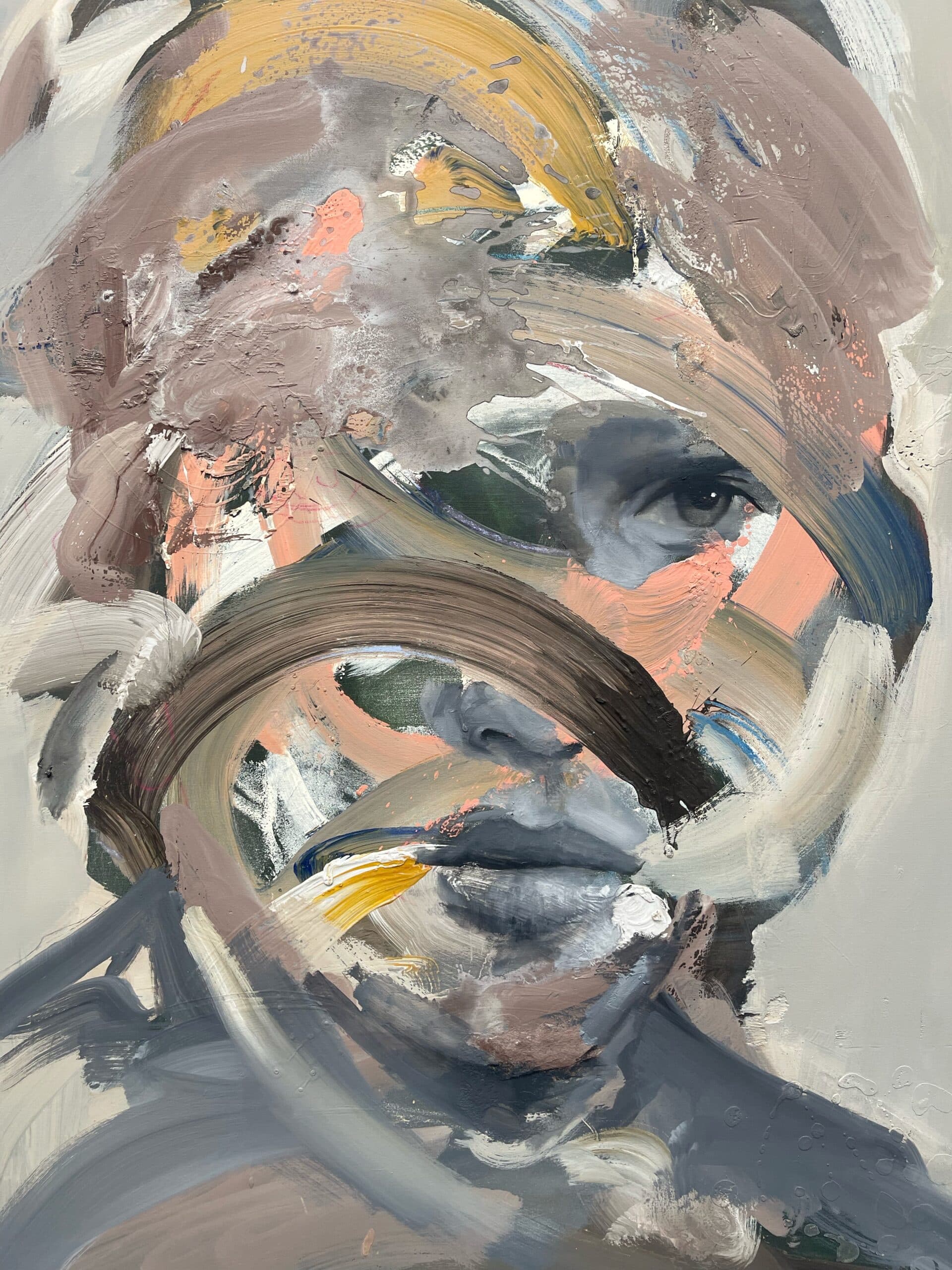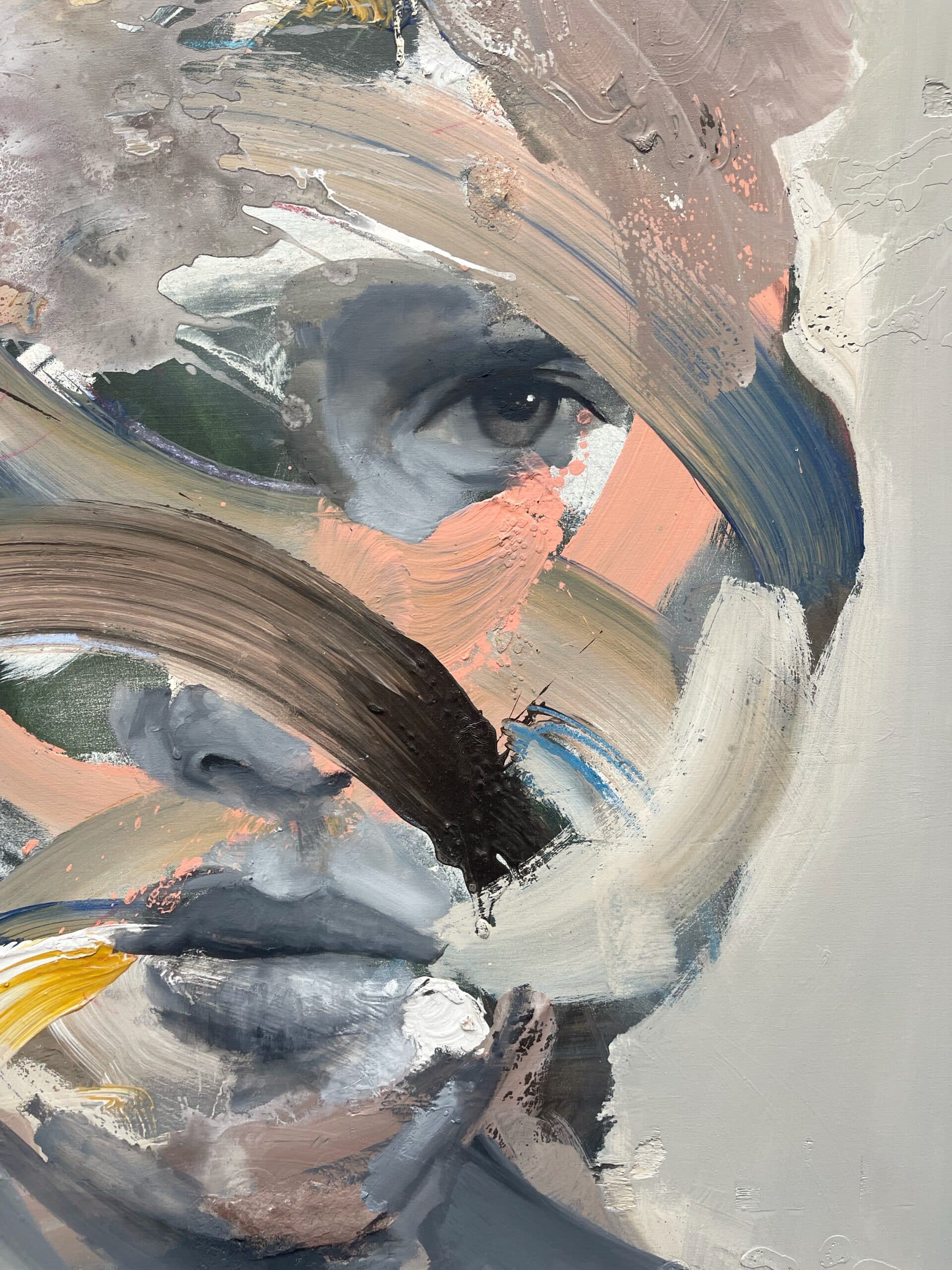 Daniël Martin’s portrait series are characterized by a layered build-up in which the artist alternates bold, energetic strokes with fine painted details. The combination of abstract and expressionistic techniques with refined elements creates a striking contrast that is emblematic of the artist’s distinctive painting style. This approach allows Daniël Martin to experiment with depth and dimension, creating work that offers the viewer space for personal imagination and interpretation.