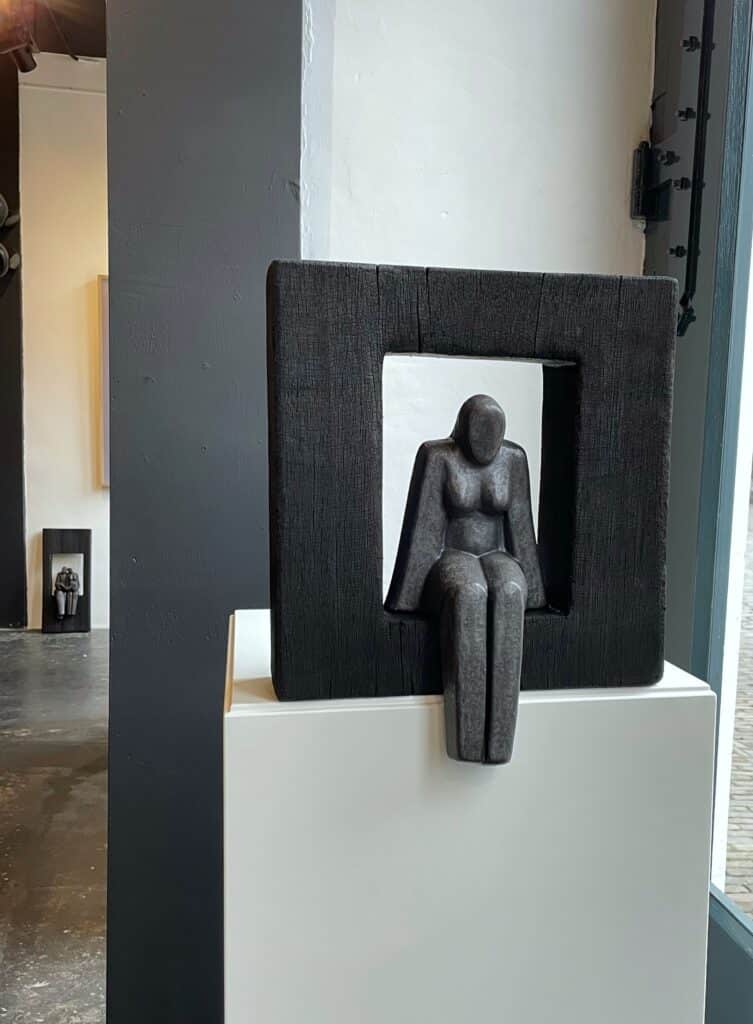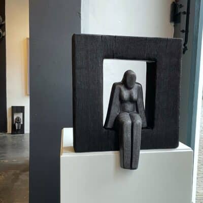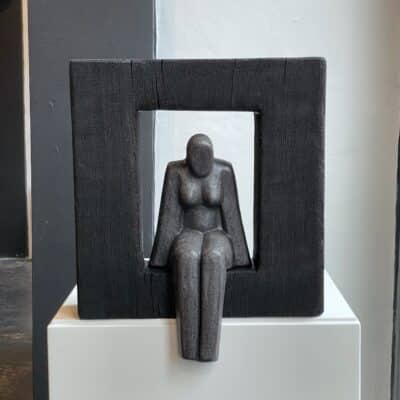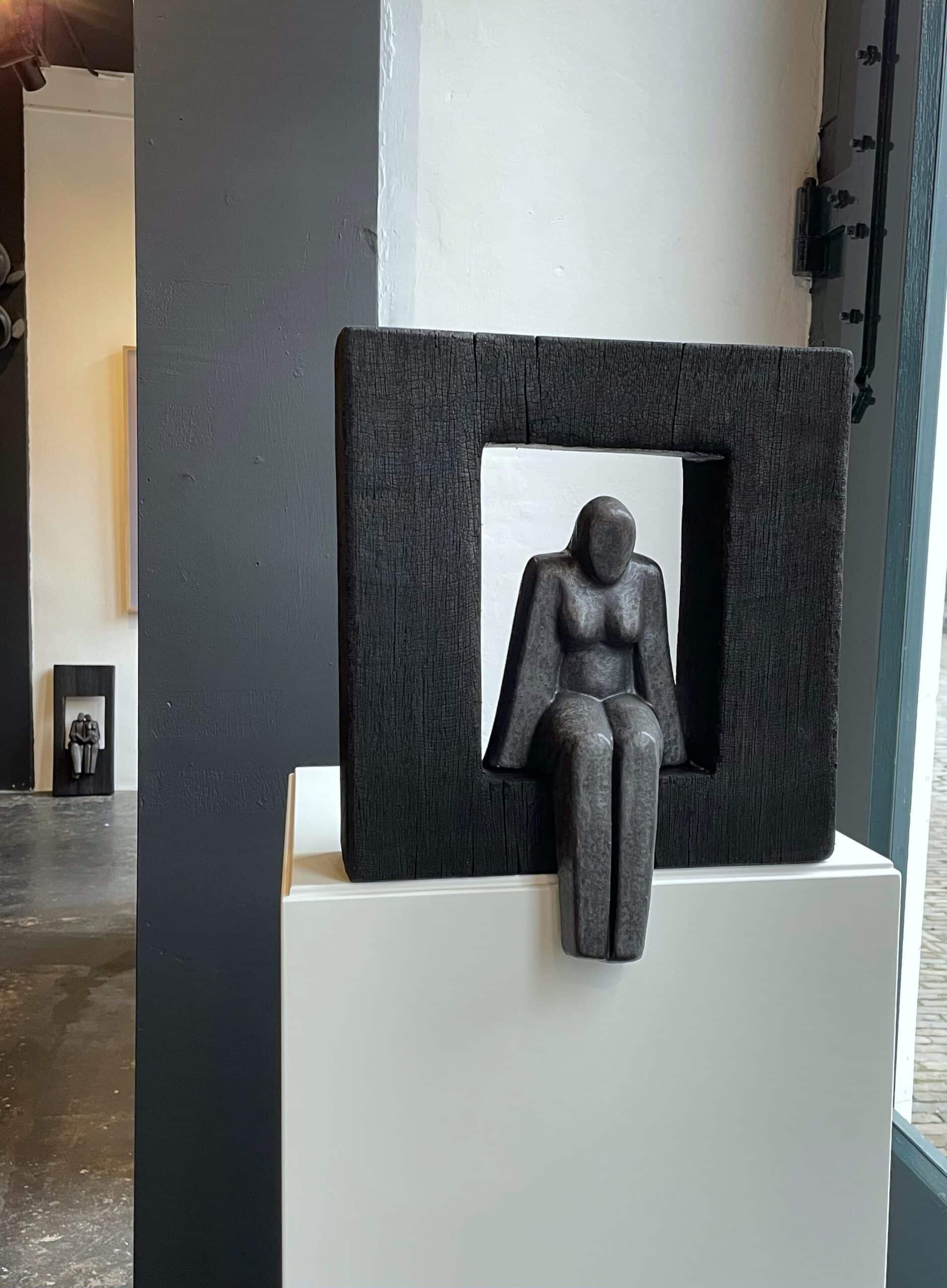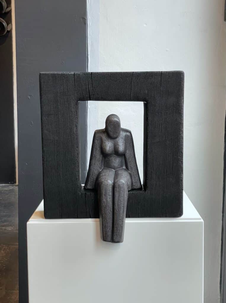 Origineel keramiek beeld van Giuseppe Lamers in zwarte houten omlijsting.